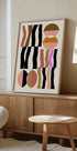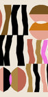 Dieses abstrakte geometrische Kunstwerk zeichnet sich durch kräftige Formen und Erdtöne im Kontrast zu Rosa und Schwarz auf einem reinweißen Hintergrund aus. Inspiriert von der Bauhaus-Ästhetik vereint die Komposition Ausgewogenheit, Rhythmus und modernen Minimalismus und schafft so ein markantes Stück, das jedes moderne Interieur aufwertet.