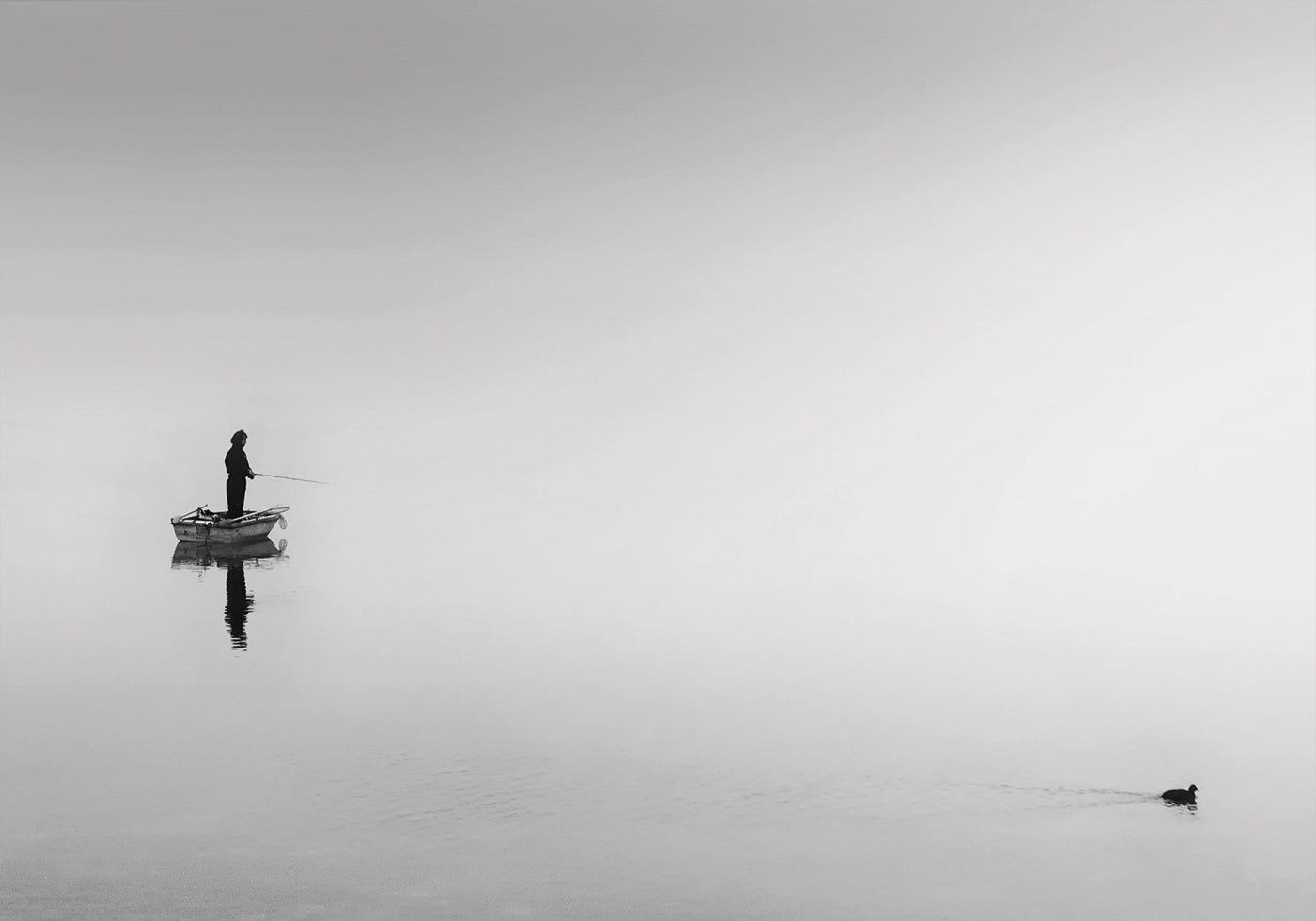 Dieses Poster zeigt eine friedliche Szene mit einem Fischer, der am Ufer eines spiegelglatten Sees sitzt. Die klare Spiegelung im Wasser und die ruhige Atmosphäre erzeugen ein Gefühl von Stille und Harmonie. Perfekt, um die Ruhe und Schönheit der Natur in Ihr Zuhause oder Büro zu bringen.