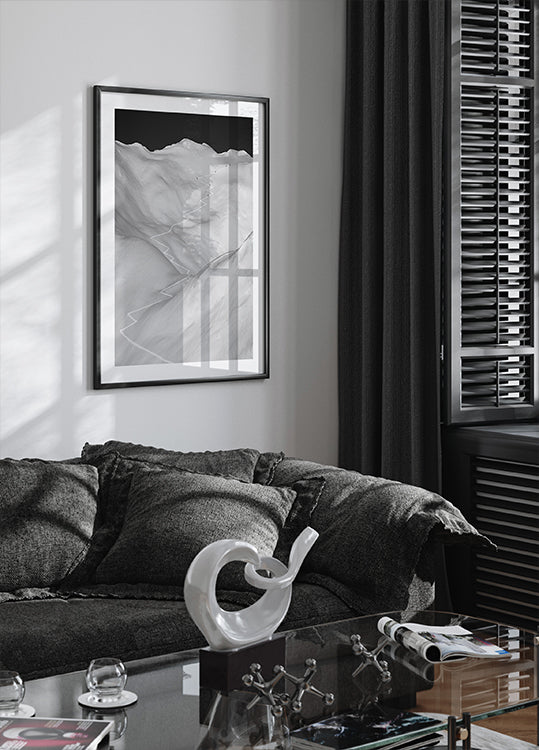 Ascent von Peter Svoboda MQEP fängt einen einsamen Skifahrer ein, der einen verschneiten Berghang hinaufsteigt, umrahmt von stilvollem Minimalismus und weichen Konturen. Der Kontrast zwischen der reinweißen Landschaft und der kleinen Figur schafft Ruhe, Spannung und Richtung – ein poetischer Moment aus Willen, Stille und Winterlicht. Perfekt für Liebhaber von Berglandschaften und nordischer Ruhe.