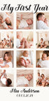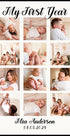 Ein wunderschönes personalisiertes Babyposter zur Feier des ersten Lebensjahres Ihres Kleinen. Dieser Fotocollagendruck fängt zwölf wertvolle Erinnerungen ein, von Neugeborenenmomenten bis hin zu frühen Meilensteinen. Ein zeitloses Andenken und das perfekte Geschenk für Eltern, Großeltern oder als Kinderzimmerdekoration.
