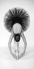 Ein beeindruckendes Schwarz-Weiß-Foto einer Ballerina in einer anmutigen Dehnposition. Von oben eingefangen, balanciert die Tänzerin auf Zehenspitzen mit elegant zum Boden ausgestreckten Armen, während das Tutu einen perfekten kreisförmigen Rahmen bildet. Das Kunstwerk zelebriert die Disziplin, Eleganz und Ausgewogenheit des klassischen Balletts.