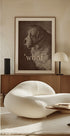 Ein humorvolles Vintage-Kunstplakat mit einem sepiafarbenen Porträt eines Hundes und dem lustigen Zitat: „Wuff, anonymer Hund 1941.“ Eine verspielte Kombination aus klassischem Porträt und Typografie, perfekt als Wanddekoration für Hundeliebhaber.