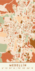 Black Maps Earth Tones 49 von Emiliano Deificus kombiniert einen eindrucksvollen Stadtplan von Medellín mit tiefen Erdtönen und kontrastierendem Schwarz. Fein gezeichnete Straßen, Viertel und Konturen bilden ein grafisches Muster, das Ruhe und Puls in Einklang bringt – perfekt für moderne Wände mit einem Hauch urbaner Poesie. Ein stilvoller Blickfang.