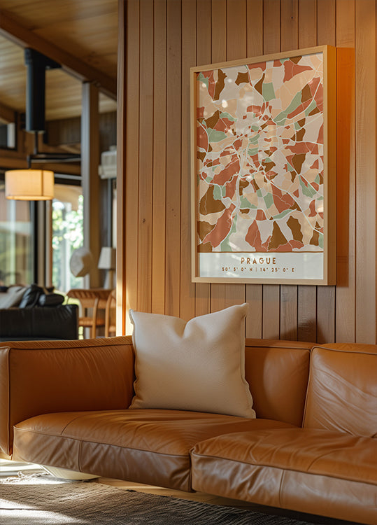 Ein stimmungsvolles Kartenposter von Prag, bei dem der schwarze Hintergrund und die Erdtöne den Rhythmus der Stadt hervorheben. Die verwinkelten Gassen und die sanften Kurven der Moldau zeichnen ein elegantes, grafisches Muster. Erstellt von Emiliano Deificus, der Moderne und Geschichte in einem zeitlosen urbanen Ausdruck vereint. Ein ruhiger, minimalistischer Ausdruck in Erdtönen.