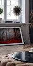 Eine unheimliche, surreale Waldszene, in der der Boden mit tiefroten Blättern bedeckt ist, die wie ein blutiger Fluss aussehen. Die neblige Atmosphäre und die markanten Baumstämme kontrastieren dramatisch mit dem intensiven Rot und schaffen ein dunkles, aber verführerisches, vom Herbst inspiriertes Kunstwerk. Perfekt für alle, die surreale und stimmungsvolle Wandkunst lieben.