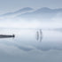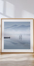 „Blue Silence“ von Jose Beut fängt einen ruhigen Moment an einem nebligen Bergsee ein. Die Silhouette eines einsamen Fischers steht ruhig vor dem hellblauen Schein, während die Spiegelung auf dem kristallklaren Wasser die Stille verdoppelt. Sanfte Pastelltöne und minimalistische Linien schaffen eine nordische, meditative Atmosphäre und ein Gefühl der Ruhe.