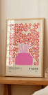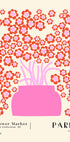 Ein verspieltes Blumenposter mit einer auffälligen rosa Vase, gefüllt mit stilisierten roten und rosa Blumen. Dieses moderne, grafische Kunstwerk verleiht dem Pariser Blumencharme einen Pop-Art-Touch.