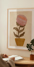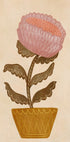 Ein bezauberndes Aquarell-Kunstwerk mit einer zartrosa Blume in einer goldenen Vase. Mit strukturiertem Vintage-Stil und sanften Pastellfarben kombiniert dieses handbemalte Stück Retro-Design mit botanischer Eleganz und ist eine zeitlose Wahl für die Blumendekoration.