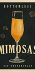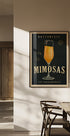 Ein Vintage-inspiriertes Art-Deco-Poster mit einem Glas bodenloser Mimosen und verspielter Typografie. Dieser Druck eignet sich perfekt für Küchen, Bars oder Brunchräume und zelebriert Champagner, Orangensaft und die Freude an Cocktails. Eine lebendige Wandkunst, die Partys und Zusammenkünften Charme verleiht.