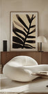 Janel Braggs Branches in Black and Beige I indfanger gesturale blækstrøg, der danser som palmeblade over en blød, beige baggrund. De lagdelte grene skaber højkontrast og bevægelse med et strejf af mørk romantik. Et stilfuldt, botanisk statement til alt fra skandinavisk minimalisme til varm boho og moderne hjem.