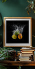 Citrus Splash von Mogyorosi Stefan fängt den Moment ein, in dem Zitrone, Limette und Orange mit funkelnden Tropfen im Wasser explodieren. Der dunkle Hintergrund und das lebendige Farbspiel erzeugen dramatische Kontraste und Bewegung – ein frisches, dynamisches Stillleben, das Küche, Bar und Wohnzimmer zum Leben erweckt. Perfekt für alle, die Farbe, Energie und moderne Küchenkunst lieben.