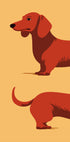 Eine verspielte, minimalistische Illustration eines Dackels, humorvoll dargestellt in zwei separaten Teilen, wobei der lange Körper über die Komposition ausgestreckt ist. Dieses moderne und unverwechselbare Kunstwerk fängt den Charme des beliebten „Wursthundes“ ein und ist perfekt für Hundeliebhaber und moderne Innenräume.