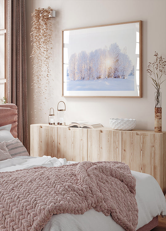 Das Winterlicht kehrt in einen stillen Waldraum zurück: Schlanke Bäume stehen in Frost und Schnee, während eine sanfte, goldene Sonne durch die kühlen Blautöne bricht und lange Schatten zwischen die Stämme wirft. „The Light Returns“ von EMELIEMaria fängt die Ruhe eines hellen, klaren Morgens ein, an dem die Natur ruhig atmet und Hoffnung sprießt.