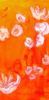 Ein kräftiges und ausdrucksstarkes Blumenkunstwerk mit dynamischen Pinselstrichen in warmen Ocker- und Orangetönen, akzentuiert durch zarte weiße orchideenartige Blüten. Inspiriert von expressionistischen Stilen mit einem modernen Touch, bringt dieses Stück tropische Wärme und Energie in jeden Raum.