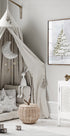 Eine einsame Fichte steht inmitten einer stillen Schneelandschaft, umgeben von zart fallenden Flusen und gedämpftem Winterlicht. Die klare, minimalistische Komposition schafft Ruhe und Präsenz und lenkt die Gedanken auf die festliche Jahreszeit. Ein poetisches Wintermotiv von Rosana Laiz Blursbyai, das nordischen Frieden in jeden Raum bringt. Perfekt für Weihnachtsstimmung, Winteratmosphäre und skandinavischen Minimalismus.