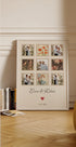 Eine romantische und elegante Fotocollage in sanften Vintage-Farben mit stempelähnlichen Rahmen. Personalisiert mit Namen und Datum und einer schönen Erinnerung an die Liebe und die unvergesslichen Momente. Ideal als Hochzeitsandenken, Jubiläumsgeschenk oder zeitlose Wandkunst.