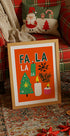 Festive Cheer Burst ist ein modernes, retro-inspiriertes Weihnachtsposter von Treechild: eine farbenfrohe Explosion winterlicher Fröhlichkeit mit Tannenbäumen, flackernden Kerzen und tanzenden Schneeflocken. Verspielte Typografien wie „Fa La La“ verbreiten Humor und Wärme, während gefrostete Grün- und Orangetöne für eine gemütliche, grafische Weihnachtsatmosphäre sorgen.