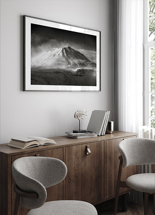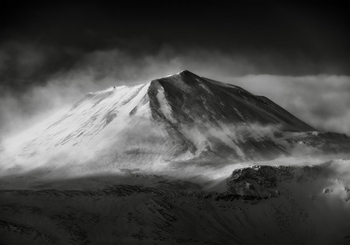 Ein rauer, winterlicher Bergrücken erhebt sich vor einem blassen Himmel; Eisblaue Töne und tiefe Schatten betonen die unerbittliche Natur. Nebel schweben an den steilen Hängen entlang und verleihen dem Motiv eine geheimnisvolle Ruhe. „Forbidden“ von Robert Bolton fängt die Schönheit der Kälte ein und lädt zum stillen Nachdenken ein. Ein starkes, minimalistisches Motiv für zu Hause.