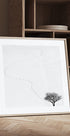 Footprint von MOSTAFA NODEH ist ein eindrucksvolles, monochromes Poster: Spuren im frisch gefallenen Schnee führen zu einem einsamen Baum auf einer offenen, gefrorenen Ebene. Die sanften Kontraste und die Weite des Himmels erzeugen Ruhe, Melancholie und Tiefe – ein minimalistisches Wintermotiv, das zum Nachdenken und stillen Drama einlädt. Der Horizont verschwindet im Weiß und die Zeit scheint stillzustehen.
