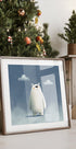 Ein fröhlicher, süßer Eisbär betritt eine ruhige Winterlandschaft, umgeben von weichem Schnee und kühlen Blautönen. Der schlichte, skandinavische Stil und das freundliche Gesicht sorgen für Wärme mitten in der Kälte. Ein bezauberndes Poster für das Wohn- und Kinderzimmer, das Ruhe, Humor und weiße Nordlichter in den Raum bringt. Perfektes Geschenk für winterliebende Seelen.