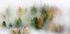 Eine verträumte Luftaufnahme eines nebligen Herbstwaldes, in dem bunte Baumkronen in Grün, Orange und Gold die Nebelschichten durchbrechen. Der sanfte Dunst erzeugt eine magische, fast surreale Atmosphäre, die die stille, sich verändernde Schönheit der Natur einfängt. Perfekt, um jedem Raum eine beruhigende und poetische Atmosphäre zu verleihen.