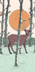 Deer In The Forest von Nicholas ist ein minimalistisches Poster mit einem stolzen Hirsch, der ruhig zwischen schlanken Birken in einer frostigen Waldlandschaft steht. Gedeckte Grün- und Cremetöne treffen auf grafische Linien und sanftes Sonnenlicht und schaffen eine japanisch inspirierte, ruhige Atmosphäre für Wohnzimmer, Schlafzimmer oder Büro.