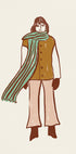 In my Winter Woolies af Tara Royle viser en stiliseret kvindefigur, nøgen men varmt pakket ind i en bred, stribet halstørklæde og robuste vinterstøvler. Minimalistiske former og en blød palet af rosa, fersken og mint skaber en retro, Matisse-inspireret stemning – både sensuel, legende og vinterligt hyggelig.