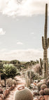 Eine ruhige, von der Wüste inspirierte Landschaft mit hohen Kakteen und üppigen Sukkulenten unter einem sanften, wolkigen Himmel. Dieses botanische Foto fängt die ruhige Schönheit einer Kaktusfarm ein, mit natürlichen Texturen, Erdtönen und einer zeitlosen Ruhe. Ein perfekter Druck für Natur- und Pflanzenliebhaber.