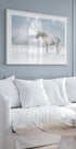En højlyst vinterstund indfanger en fri hest, der træder frem gennem stille snefald. De bløde nuancer og minimalistiske kontraster skaber en drømmende ro, hvor man næsten hører sneen falde. Et poetisk, skandinavisk motiv af fotograf Celine Weerink, der giver rummet lys, stil og tidløs elegance. Perfekt til rolige, nordiske interiører.