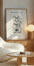 Maneki Neko Lucky Cat Poster zeigt eine minimalistische Linienzeichnung der ikonischen japanischen Glückskatze, die bekanntermaßen Glück und Wohlstand bringt. Mit einer klaren schwarzen Illustration auf einem weichen, neutralen Hintergrund verbindet dieses Stück kulturelle Symbolik mit moderner Schlichtheit. Perfekt, um Wohnzimmern und Büros einen Hauch von Charme und Positivität zu verleihen oder als aufmerksames Geschenk für Liebhaber japanischer Kultur und Glücksbringer.