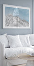 Et minimalistisk, marmor-inspireret landskab af amini54 udfolder sig i kølige vintertoner: bølgende hav møder fjerne, snedækkede bjerge under en dramatisk himmel af skyer. I horisonten svæver en flok fugle og giver motivet rolig bevægelse. En sofistikeret plakat, der indfanger naturens rå poesi. Perfekt til stue, kontor eller soveværelse.