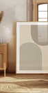 Ein stilvolles geometrisches Design mit geschichteten Bögen in Erdbraun- und Salbeigrüntönen auf einem sanften beigen Hintergrund. Die klaren Linien und die moderne Komposition schaffen eine beruhigende und strukturierte Ästhetik – perfekt für japanische, skandinavische oder minimalistische Innenräume.