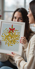 Bringen Sie mit Annicks minimalistischem Mistelzweig nordische Ruhe an Ihre Winterwände: frische grüne Zweige und blasse Beeren, die von einer kräftigen roten Schleife zusammengehalten werden und auf einem klaren weißen Grund schweben. Es ist eine anmutige Anspielung auf Feiertagstraditionen und gemütliche Küsse und erhellt Flure, Esszimmer und gemütliche Leseecken. Perfekt für ruhige, moderne Räume.