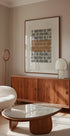 Pattern in Contrast von THE MIUUS STUDIO kombiniert enge Linien, Gitter und rhythmische Streifen mit weichen, organischen Formen. In neutralen Beige-, Schwarz- und Brauntönen erzeugt die Komposition einen ruhigen, grafischen Ausdruck mit klarer Tiefe und Kontrast – ideal für minimalistisches, modernes und Mid-Century-inspiriertes Dekor.