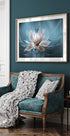 Dieses elegante Makrofoto fängt eine zarte Blume in sanften Weiß- und Blautönen ein und hebt die Adern der Blütenblätter und glitzernden Tautropfen hervor. Die verträumte Stimmung und die detaillierten Nahaufnahmen schaffen ein raffiniertes und beruhigendes Kunstwerk, perfekt für eine moderne botanische Bilderwand.