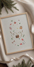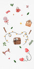 Eine schöne Aquarellillustration von Xuan Thai, die den Zauber von Weihnachten mit einem gemütlichen Lebkuchenhaus, Zuckerstangen und bunten Lutschern, warmen Fäustlingen und funkelnden Lichterketten einfängt. Kawaii-Details, Rentiergeweihe und kleine Geschenkboxen sorgen für eine verspielte Atmosphäre – perfekt für Kinderzimmer und winterliche Gemütlichkeit. Ideal als saisonale Dekoration.
