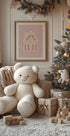 Betreten Sie ein zuckersüßes Winterabenteuer: ein pastellrosa Lebkuchenhaus mit tropfendem Zuckerguss, Zuckerstangenrändern und bunten Weingummis, die im stillen Schneefall glitzern. Warme Fenster erhellen in der Dämmerung und verbreiten Gemütlichkeit. Kreiert von Talitha McQueen, ein charmanter saisonaler Favorit für die Wände Ihres Zuhauses. Perfekt für weihnachtliche Kuschelecken.