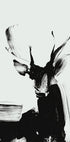 Ein abstraktes Schwarz-Weiß-Porträt eines Hirsches, erstellt mit kräftigen, ausdrucksstarken Pinselstrichen. Gesicht und Geweih sind in den rohen, kunstvollen Strichen zu erkennen, die dem Motiv einen dramatischen und modernen Ausdruck verleihen.