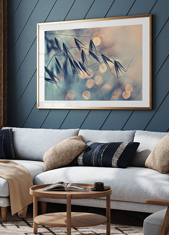 Diese ruhige Nahaufnahme fängt zarte Grashalme vor einem verträumten Pastellhintergrund mit sanftem Bokeh-Licht ein. Die friedliche Atmosphäre und die fragile Eleganz schaffen ein beruhigendes Kunstwerk, das Harmonie, Stille und Ruhe ausstrahlt, perfekt für eine entspannende Bilderwand.