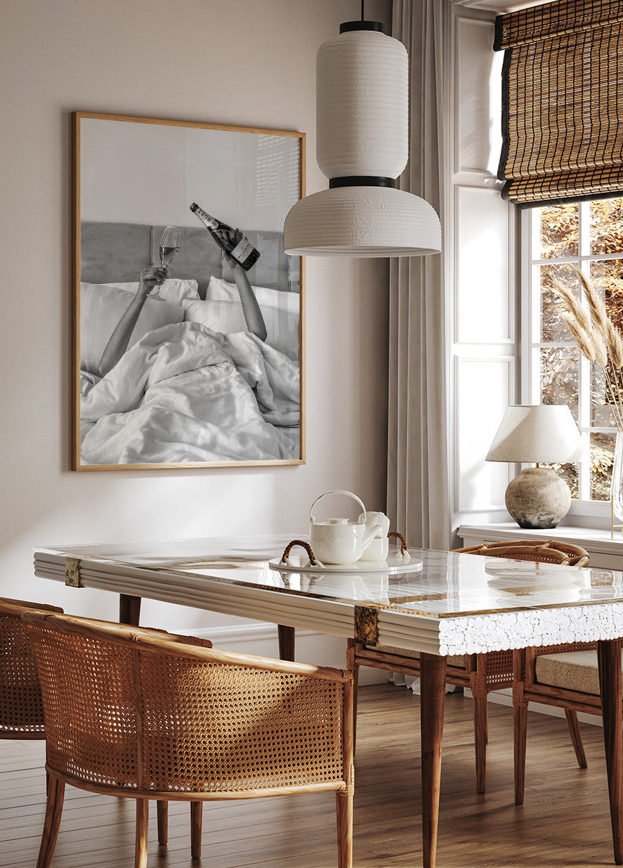 Poster Frau trinkt Wein im Bett