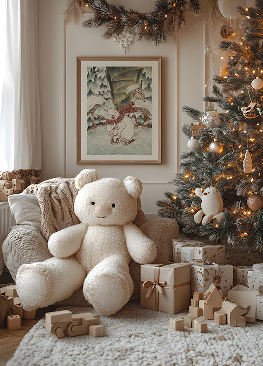 Erstellt von Olena Kovalova: Creatures of the North vereint einen freundlichen Bären und ein neugieriges Kaninchen in einem verschneiten Land im Norden. Gedämpfte Rot-, Grün- und Blaugrüntöne sowie ein Hauch von Vintage sorgen für eine warme Weihnachtsatmosphäre, während die ruhigen Details in den ruhigen Wintertagen zu Präsenz und Gemütlichkeit einladen. Perfekt für die gemütlichen Ecken an Weihnachten.