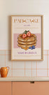 Ein bezauberndes Poster im Vintage-Stil mit einem Stapel flauschiger Pfannkuchen mit Erdbeeren, Blaubeeren und goldenem Sirup. Dieses mit Retro-Typografie und Pastellfarben gestaltete Kunstwerk verbindet Essensnostalgie mit stilvoller Dekoration und eignet sich perfekt für Küchen, Cafés oder Frühstücksliebhaber.