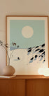 „Snowy Mountain Descent“ von Nicholas fängt das Rauschen eines einsamen Skifahrers ein, der durch den Pulverschnee an ruhigen, eindrucksvollen Berghängen entlang fährt. Minimalistische Blau- und Weißtöne, eine tiefstehende Wintersonne und klare Linien schaffen eine moderne, ruhige Atmosphäre mit Retro-Ski-Flair und nordischer Schlichtheit. Perfekt, um ein Gefühl von Abenteuer und visueller Ruhe in Ihrem Zuhause zu wecken.