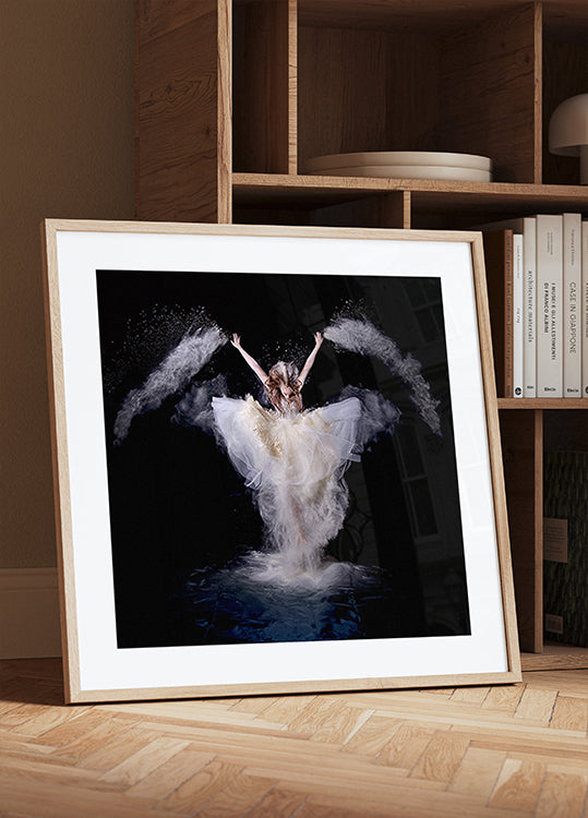 „Powder Rush“ von Pauline Pentony fängt den Moment ein, in dem ein Tänzer in Bewegung gerät, umgeben von einem Wolkenbruch aus Pulver, der engelsgleiche Flügel bildet. Der dunkle, dramatische Hintergrund hebt die helle Figur hervor, während der Sprung, das Kleid und das Federstauben Poesie, Kraft und Abenteuer erzeugen. Ein modernes, abenteuerliches Porträt.