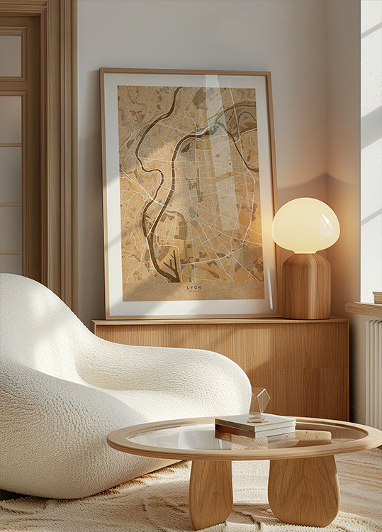 Sepia-Vintage-Karte von Lyon, Frankreich von Rosana Laiz Blursbyai – Hochwertiges Papier mit glatter, matter Oberfläche und eleganter Haptik. Die matte Oberfläche reduziert Blendungen und sorgt für ein raffiniertes, zeitloses Aussehen. Robust und langlebig für den dauerhaften Einsatz, ideal sowohl für den professionellen Einsatz als auch für dekorative Präsentationen.