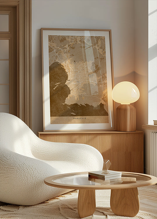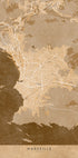 Sepia-Vintage-Karte von Marseille, Frankreich von Rosana Laiz Blursbyai – Hochwertiges Papier mit einer glatten, matten Oberfläche und eleganter Haptik. Die matte Oberfläche reduziert Blendungen und sorgt für ein raffiniertes, zeitloses Aussehen. Robust und langlebig für den dauerhaften Einsatz, ideal sowohl für den professionellen Einsatz als auch für dekorative Präsentationen.