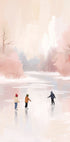 Schlittschuhlaufen von Ohkimiko fängt den stillen Zauber des Winters ein: Kinder rutschen über einen zugefrorenen See, umgeben von schneebedeckten Bäumen, Pastellfarben und sanftem Winterlicht. Die Szene strahlt Ruhe, Spiel und weihnachtliche Atmosphäre aus und weckt Erinnerungen an einen zeitlosen Wintertag in der Natur – perfekt, um Gemütlichkeit und Frieden ins Zuhause zu bringen. Jetzt.
