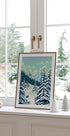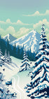 Ein zeitloses Winterposter von Nicholas: sanfte Blautöne, Sonne über schneebedeckten Gipfeln und ein ruhiger Tannenwald. Die weichen Formen und Retro-inspirierten Details schaffen eine ruhige Skiatmosphäre – perfekt für alle unter Ihnen, die von frischem Pulverschnee, klarem Himmel und ruhigen Pisten in den Bergen träumen. Inspiriert von klassischen Reiseplakaten und der Liebe zu den Bergen.
