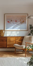 En strålende rød kardinal sidder på en snedækket gren i den første, gyldne morgensol. Baggrunden glitrer i blød bokeh, som små frostlys, og giver motivet en rolig, romantisk vinternote med et strejf af højtidsglæde. "Snowy Morning Party" er skabt af kunstneren Ling Lu. Perfekt til at bringe naturens fest og vintermorgenens varme glød ind i rummet.