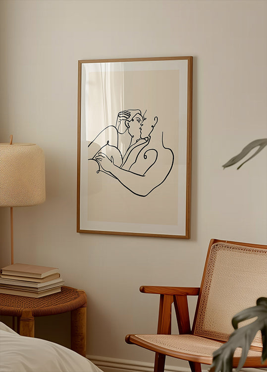 Uma Gokhales The Kiss er en elegant sort-hvid line art, der indfanger øjeblikket før et intimt kys. Rene konturer, generøs negativ plads og poetisk ro skaber et tidløst fokuspunkt i skandinavisk indretning. Perfekt til stue eller soveværelse og som romantisk gave. Matcher japandi og moderne nordisk minimalisme.